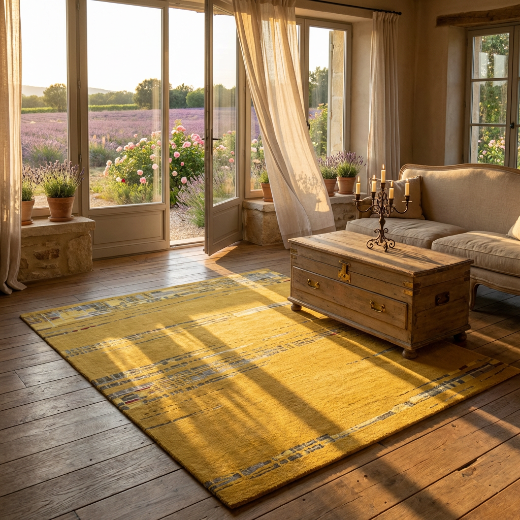 Luxurious New Zealand Wool for exceptional softness and durability | Abstract linear pattern in warm golden hued tones for modern elegance | Hand-tufted craftsmanship ensuring unique texture and lasting quality | Versatile design, ideal for living rooms, bedrooms, or sophisticated office spaces
